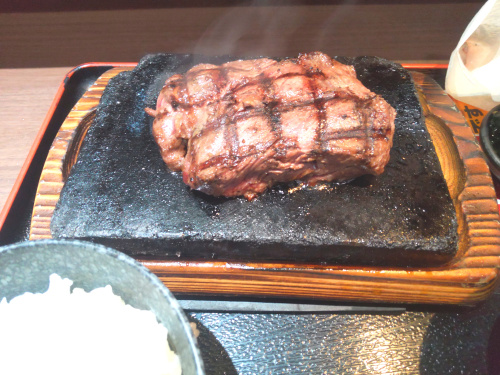 大好きなハラミステーキをチョイスして食券を渡すとすぐに焼き始めて数分で手元へ♪