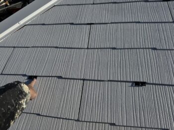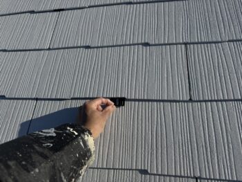 最後に上塗を行って屋根塗装は完了となります。勿論付随する軒樋等の塗装も別の工程で塗装していきます。